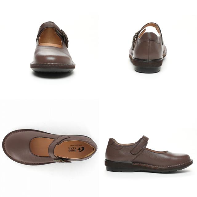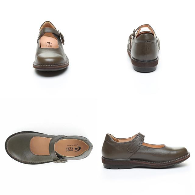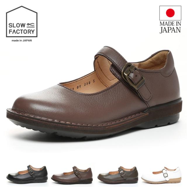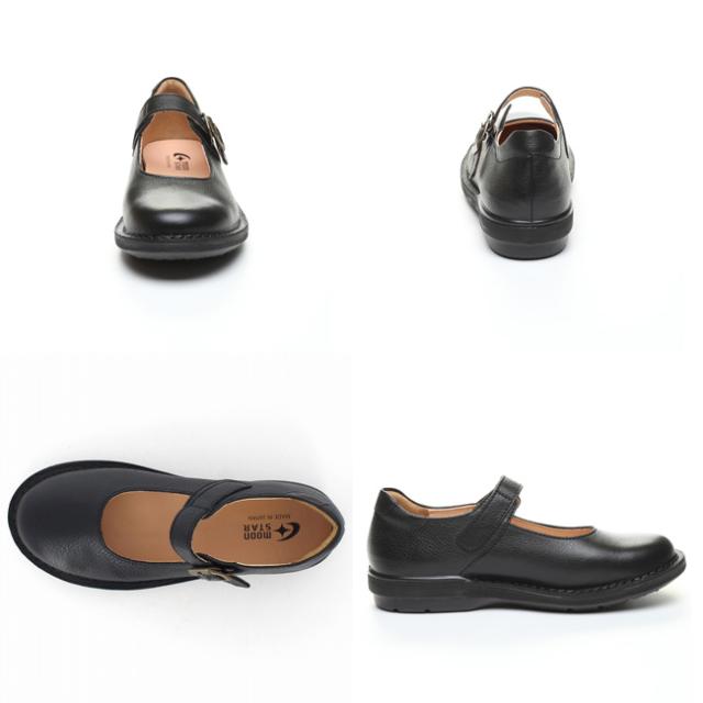 スロウファクトリー レディース カジュアルシューズ SLワンベルト01 ムーンスター 黒 幅広 革靴 本革 撥水 日本製 靴 シューズ