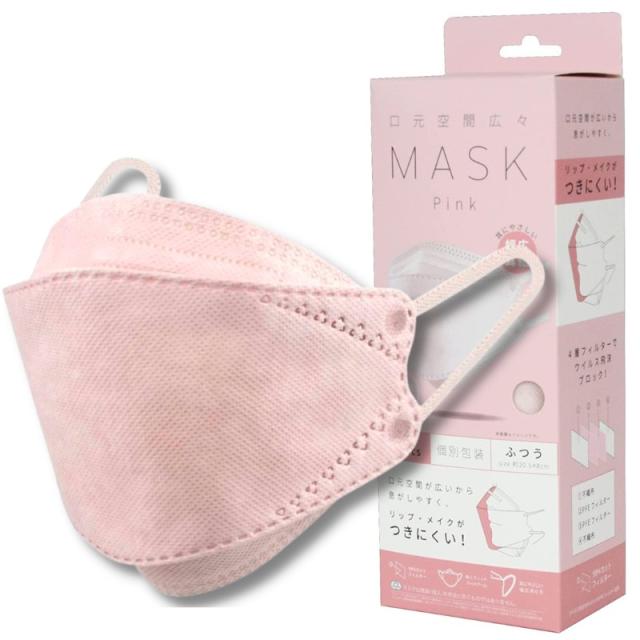 KF94マスク 口元空間広々マスク ピンク(1箱個装20枚入×5箱)不織布4層マスク PFE99%カットフィルター採用 鼻フィットアーム幅広耳ヒモ
