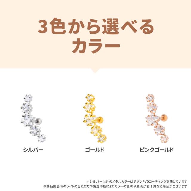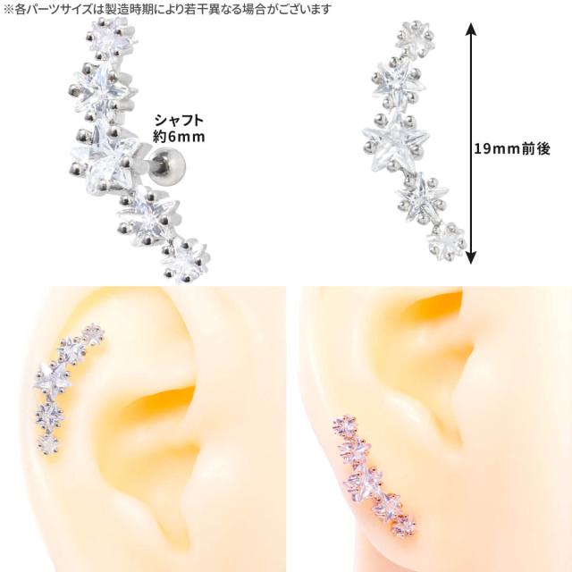 5連 ジュエル スター ストレートバーベル 14G 16G 18G 20G サージカルステンレス ジルコニア ヘリックス 軟骨ピアス ボディピアス 星
