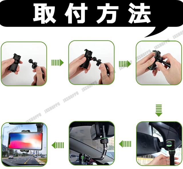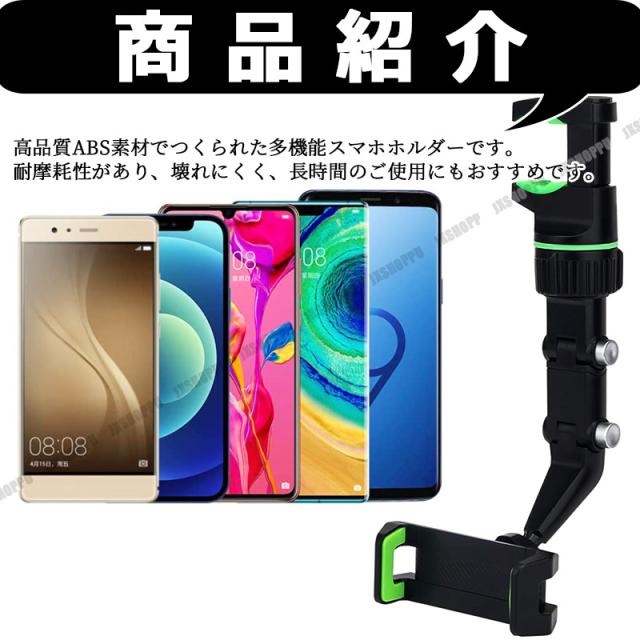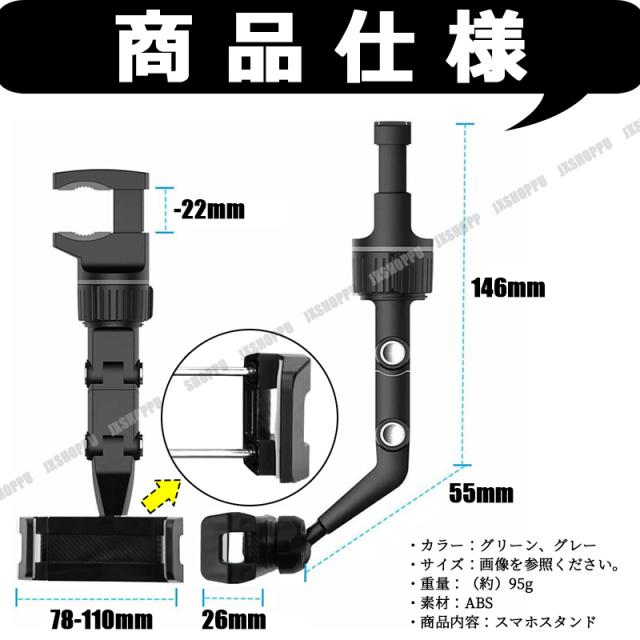 車載 スマホスタンド [グレー] スマホホルダー 360度 回転 スマートフォン iPhone バックミラー 後部座席 安定 簡単取付 汎用 送料無料 車用 カーナビ 代用 ルームミラー ミラー 固定 安定 スマートフォン スマフォ 表示 取り付け スタンド アーム 便利 車中泊 車内泊 車