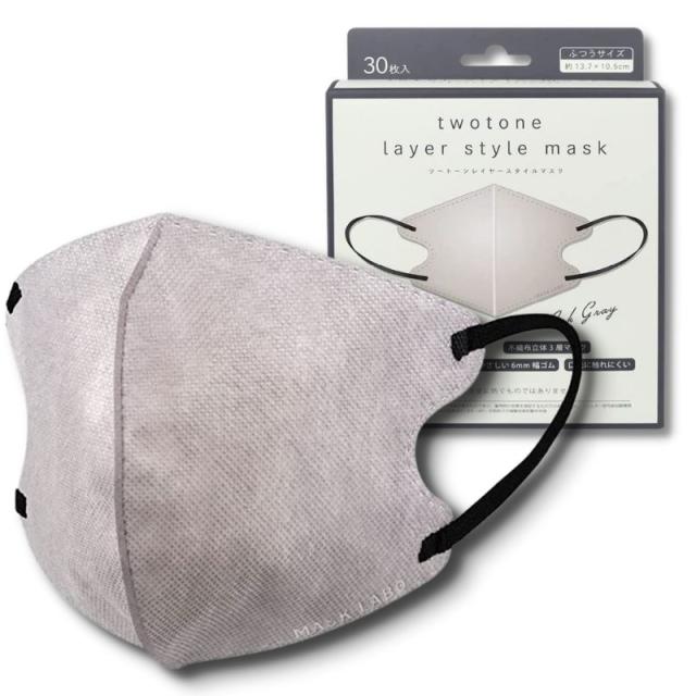 富士 3Dマスク ツートンカラー 耳が痛くなりにくい 立体マスク レイヤースタイル 30枚入 不織布 ふつうサイズ アッシュグレー