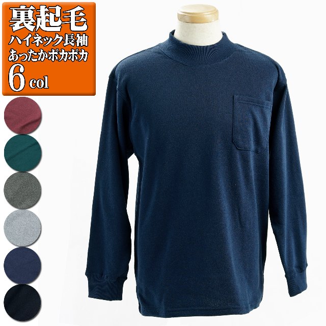 ハイネック メンズ トレーナー 裏起毛 スウェット 部屋着 パジャマ 秋冬 あったか ポカポカ 冬衣料 袖 衿 リブ 仕様 ポケ付き