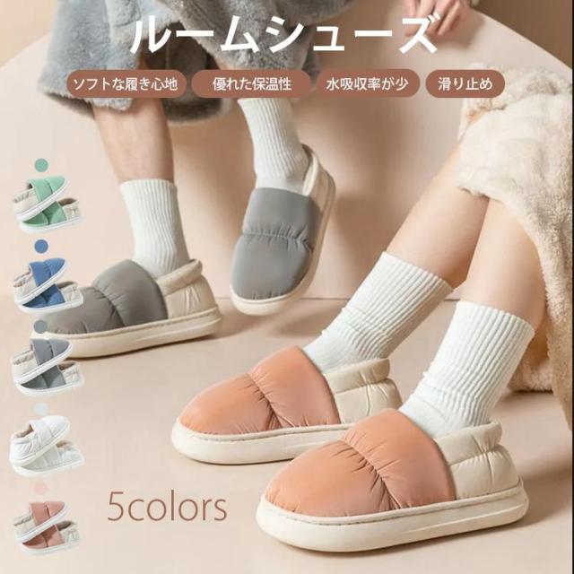スリッパ ルームシューズ ぽかぽか かわいい 裏起毛 中綿ダウン 滑り止め 撥水 厚手 防寒 あったか 室内履き 室内スリッパ レディース メンズ