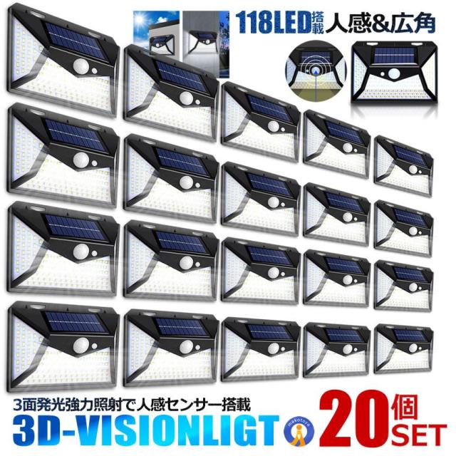 20個セット ソーラーセンサーライト LED 118LED 人感センサー 簡単設置 配線不要 屋外 防水 3面点灯 モーションセンサー ソーラーライト 庭 玄関 駐車場 防災 災害 4-DVISION