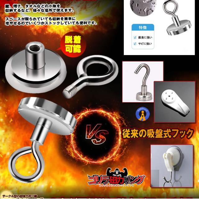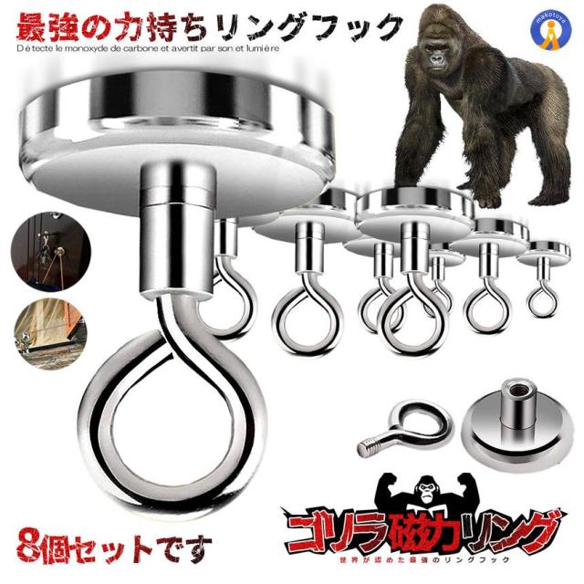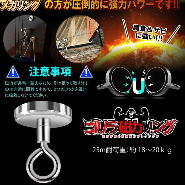 8個セット マグネットフック 強力 直径25mm 磁力リング 耐荷重最大20kg 磁石 キッチン オフィス 強力磁石 レンジフード 冷蔵庫 浴室 収納 吊り下げ 金属 4-MEGGAGA