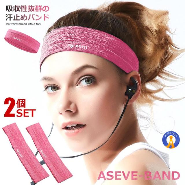 2個セット 汗防止バンド ピンク スポーツ用 ヘッドバンド 汗 止め バンド 男女兼用 吸収性 滑らない 柔軟性 フィットネス ジム おしゃれ 筋トレ ランニング 運動 ASEAVEBAN-PK