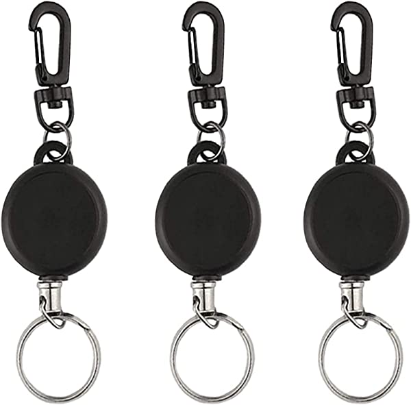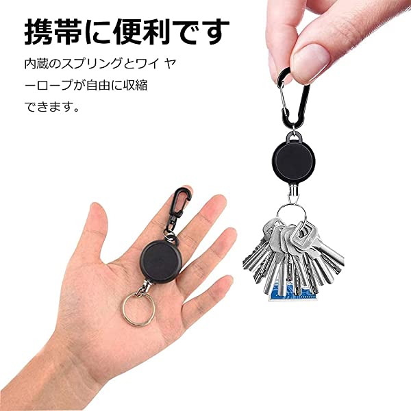 リールキーホルダー(3個セット/黒/ABS) カラビナ付 リールストラップアクセサリー 伸縮自在 紛失防止 キーホルダー 釣りのボタン ウェビングのバックル アウトドア用