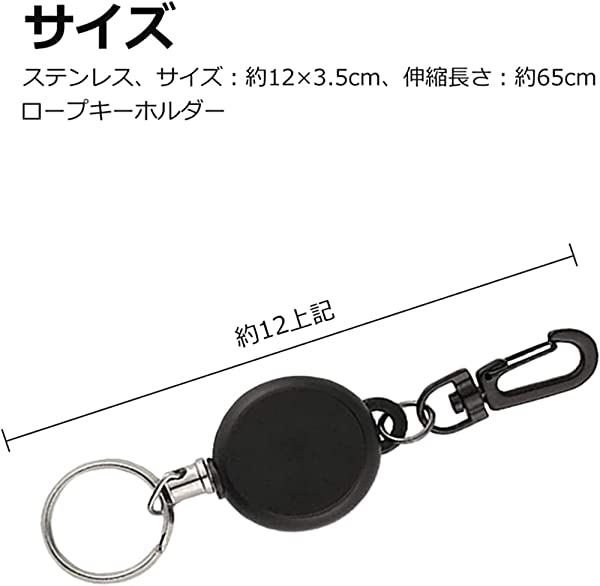 【自由収縮】サイズ:約12 x 3.5センチ、内蔵バネとワイヤーロープは自由収縮できる。
