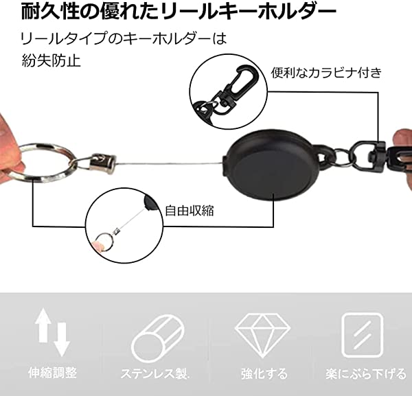 【適用範囲】身分証明書、通行証、鍵、趣味小物などをかけるために使用できるリール式キーホルダー。 平たい形をしているので、シールやウォータードリルなどで好きなように飾ることができます。