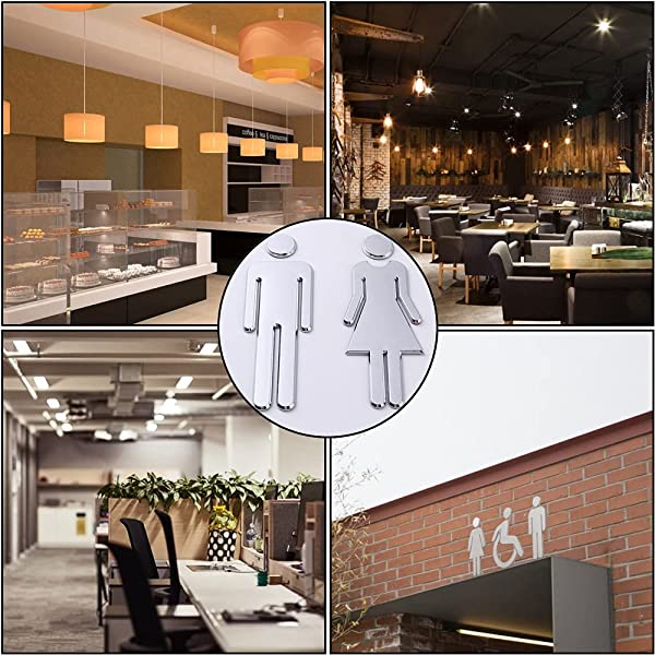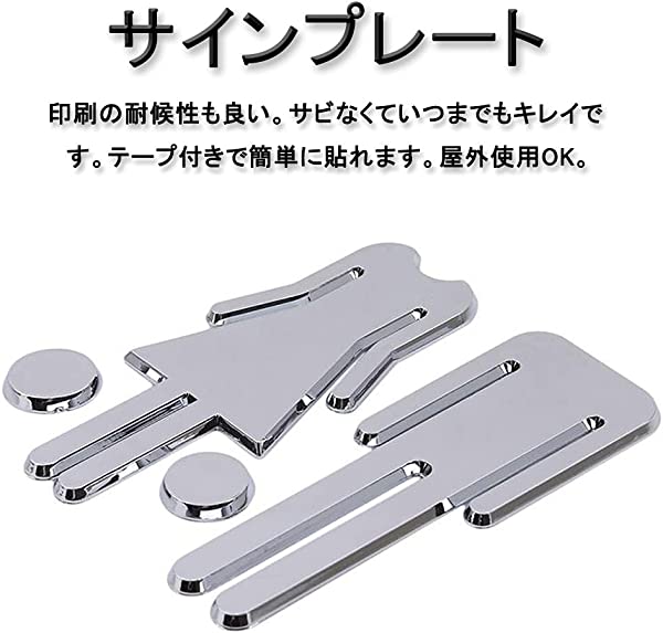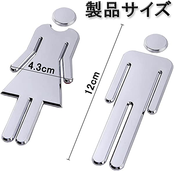 トイレサイン (男女セット/1セット) 男女 案内プレート サインプレート トイレマーク 便所 インテリア WC看板 ホテル 化粧室標識 店舗 (12cm/シルバー)
