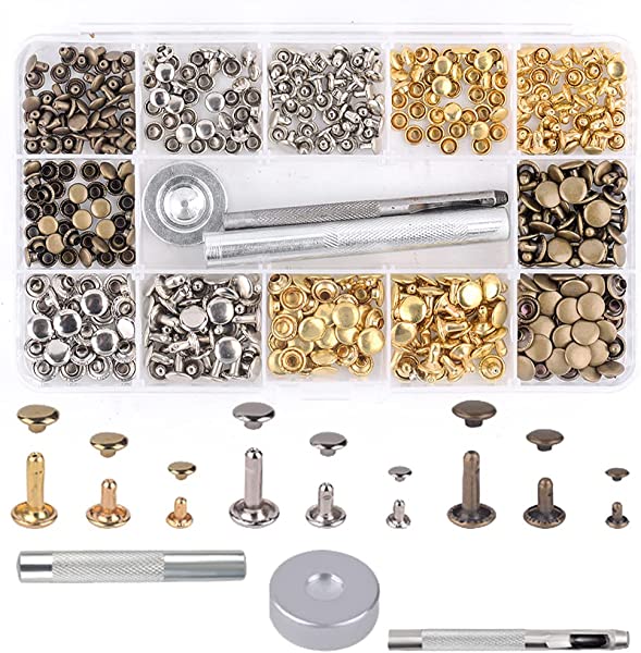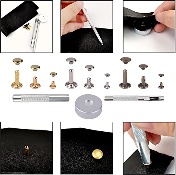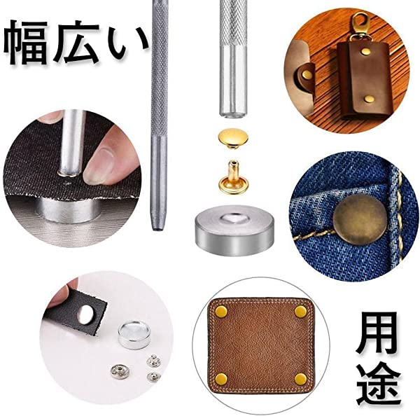 【使いやすい】専用のホック打ち具を一箱に揃えた便利なお得セットです。手芸、修理用カシメセット!使用方法は簡単!これは挟むだけで穴が開くから初心者にも使いやすいです。