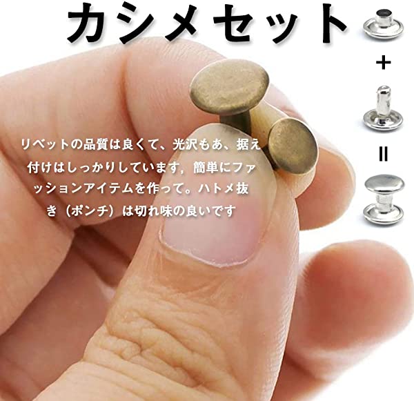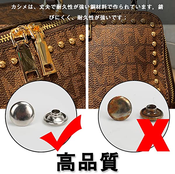 【高品質】カシメは、丈夫で耐久性が強い銅材料で作られています,錆びにくく、耐久性が強いです,使用は簡単で;塗料プロセスで作られ,リベットの品質は良くて、光沢もあ、据え付けはしっかりしています,簡単にファッションアイテムを作って。ハトメ抜き(ポンチ)は切れ味の良いです。