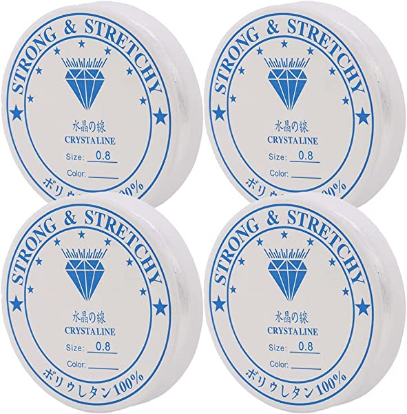 シリコンゴム 4巻セット 太さ0.8mm ブレスレット用 ゴム紐 弾力紐 水晶の線 伸びる糸 クリア色 DIY 手芸 手作り アクセサリー (0.8mm)