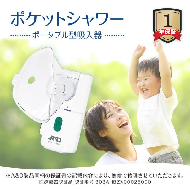 吸入器 A&D エー・アンド・デイ UN-302ECO ポータブル型 喉ケア 超音波式 ポケットシャワー 生理食塩水 花粉 鼻 喉 家庭用 超音波 ミスト 携帯用 丸洗い