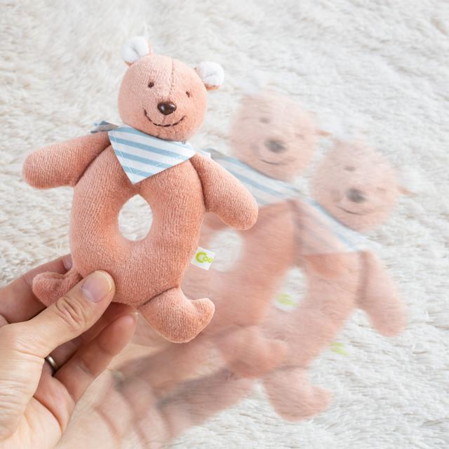 ●赤ちゃんがにぎりやすいリングタイプでやさしい音色の鈴が入っています。