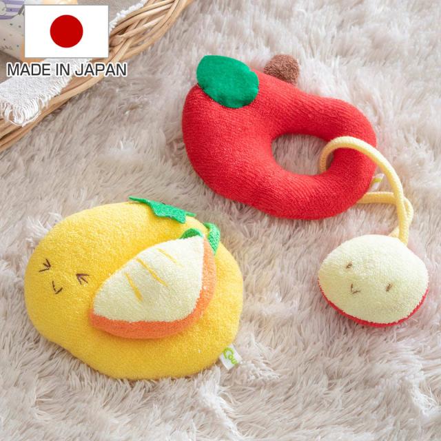 ママの肌の感触に似た柔らかくて、やさしい手触りのガラガラです。安心の日本製で、何十年も知育玩具を作り続けている職人さんが、ひとつひとつ丁寧に仕上げています。赤ちゃんがにぎりやすいリングタイプでやさしい音色の鈴が入っています。洗濯機で洗えるのでお手入れも簡単、いつも清潔に保てます。出産祝いやプレゼントにもおすすめです。
