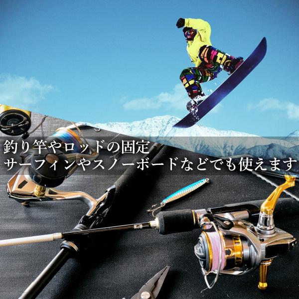 ・釣り竿やロッドの固定、スノーボードやサーフィンなどでも使用することができます。