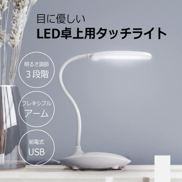LED 電気 スタンド 卓上 デスクライト 目に優しい 学習机 やさしい フレキシブル アーム 小型 コンパクト 調光式 3段階 読書灯 卓上用 タッチライト