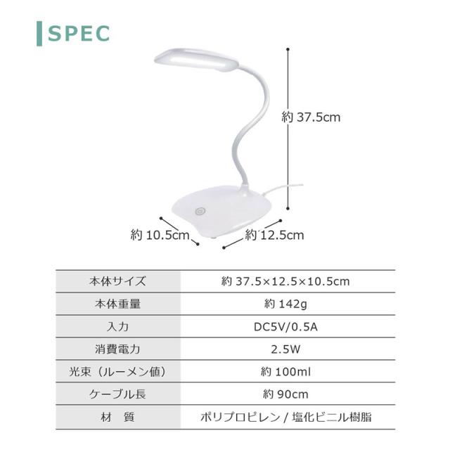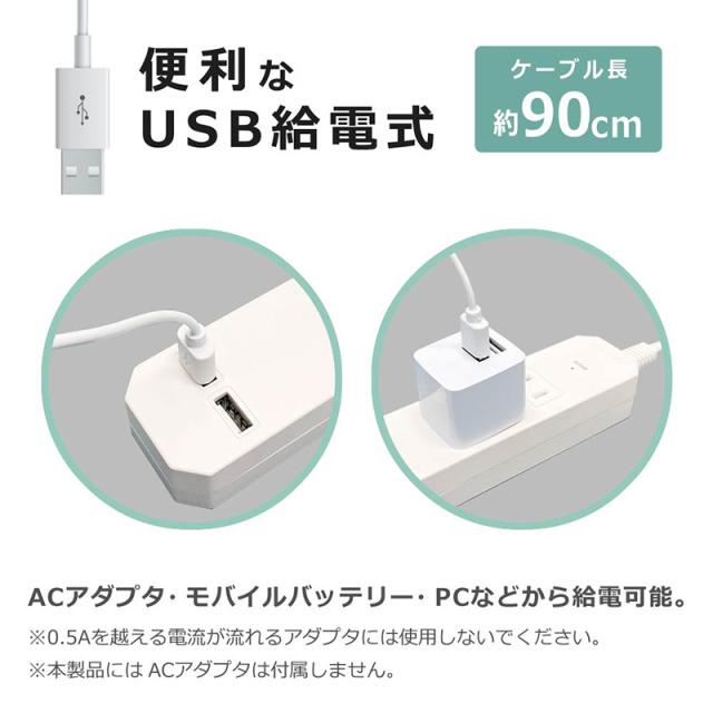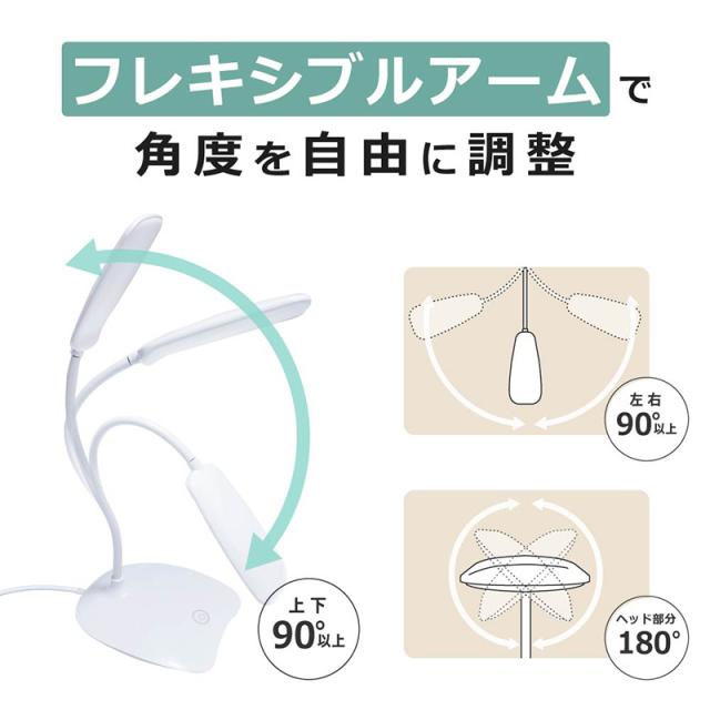 フレキシブルアームで角度の調整もしやすく、コンパクトなサイズ感&90cmのUSB給電ケーブルで、省スペースにお使いいただけます。