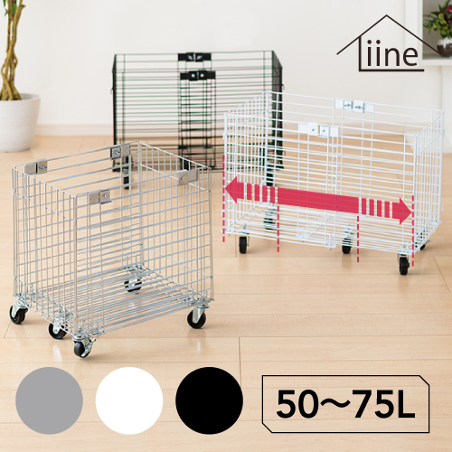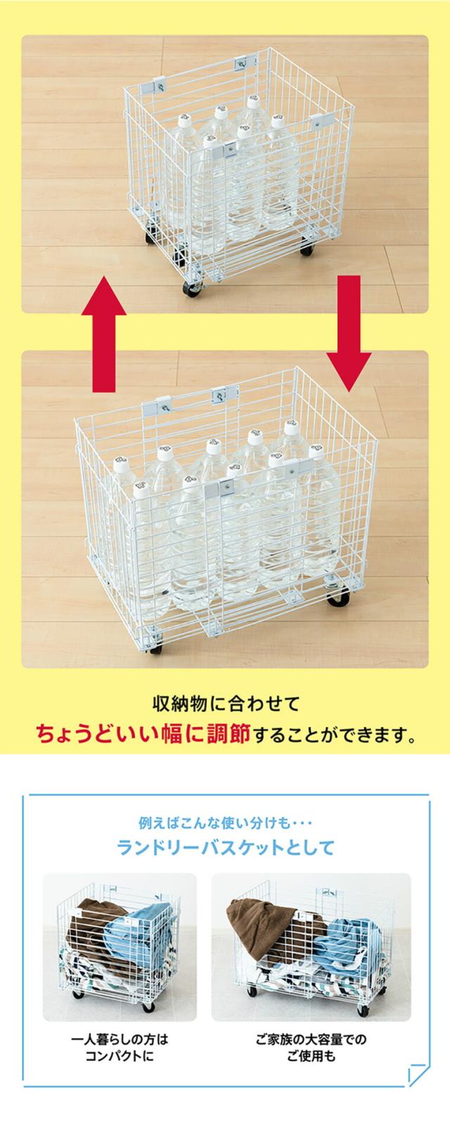 伸縮ゴミ箱 キャスター付き ワイヤーバスケット スライドバスケット 洗濯かご 不織布ライナーバッグ付属 幅41.5cm〜幅61.5cm 奥行35cm 高さ44cm 容量50L〜70L 50リットル 70リットル キャスター付き ゴミ箱 キャスター付きバスケット キャスター付きランドリーバスケット