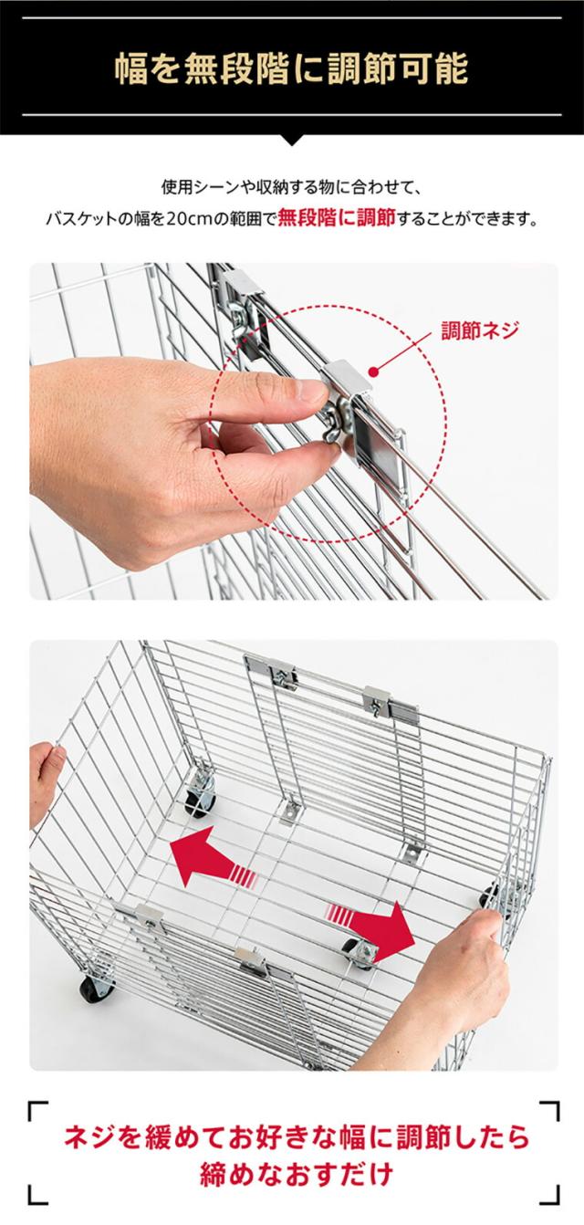 伸縮ゴミ箱 キャスター付き ワイヤーバスケット スライドバスケット 洗濯かご 不織布ライナーバッグ付属 幅41.5cm〜幅61.5cm 奥行35cm 高さ44cm 容量50L〜70L 50リットル 70リットル キャスター付き ゴミ箱 キャスター付きバスケット キャスター付きランドリーバスケット ネイルサロン 美容室 タオル収納 小物入れ おもちゃ入れ マルチバスケット ストッカー キャスター付き伸縮ワイヤーバスケット 伸縮バスケット キッチンバスケット ペットボトル用バスケット 洗濯カゴ