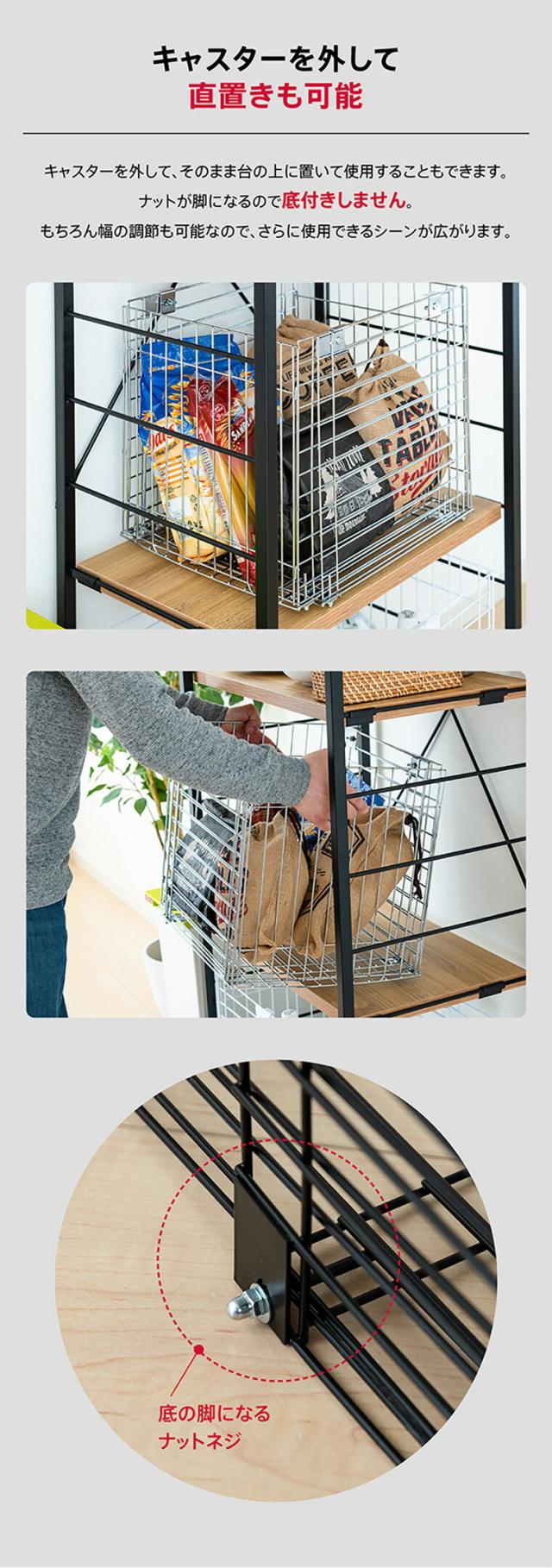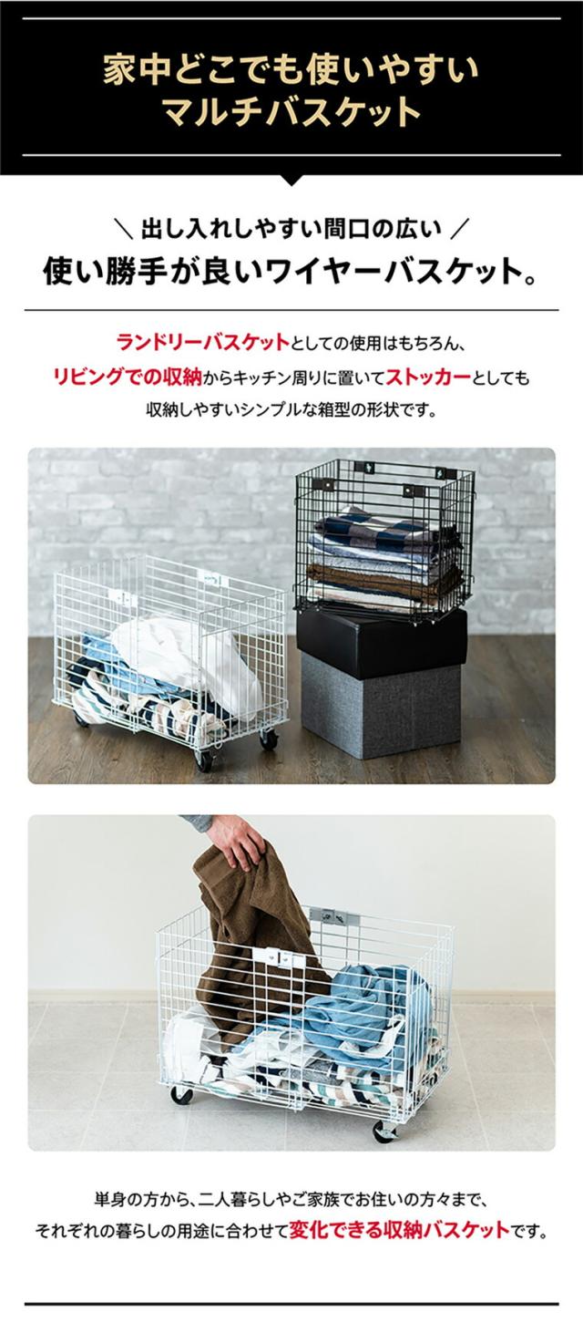 キャスター付きのゴミ箱としての使い方や、ランドリーバスケット、キッチンバスケットなど使い方は無限大です。