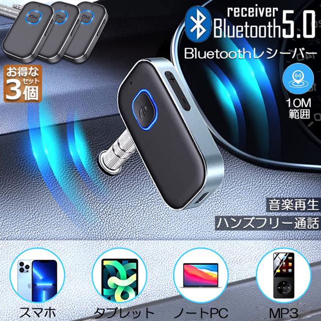 Bluetooth レシーバー 車 AUX 受信機 3台セット ブルートゥース レシーバー Bluetooth受信機 車載 3.5mm 16時間再生 2台同時接続 自動車 ホームステレオ ヘッドフォン スピーカー マイク内蔵 ハンズフリー通話対応