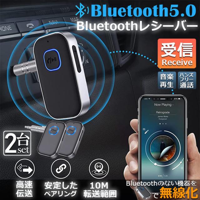 Bluetooth レシーバー 車 AUX 受信機 2台セット ブルートゥース レシーバー Bluetooth受信機 車載 3.5mm 16時間再生 2台同時接続 自動車 ホームステレオ ヘッドフォン スピーカー マイク内蔵 ハンズフリー通話対応