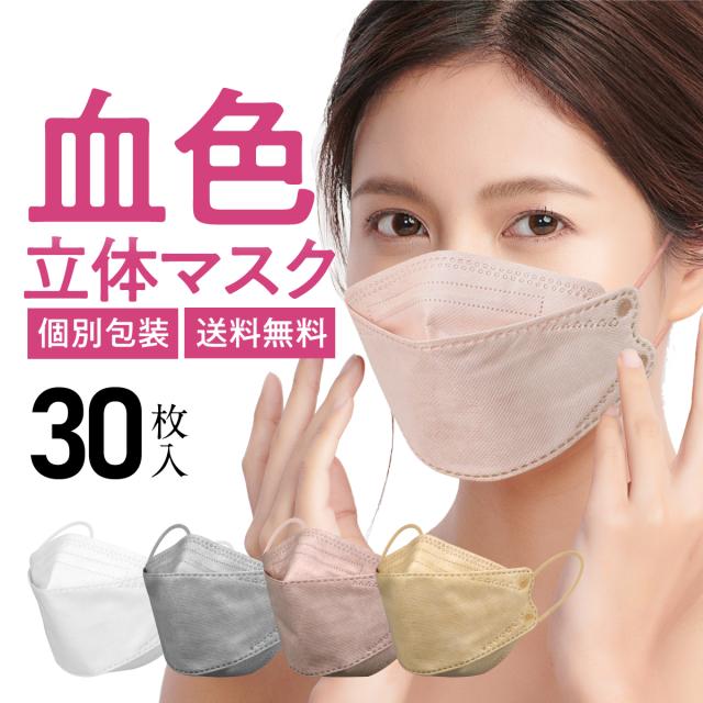 マスク 不織布 立体 血色マスク 30枚 個包装 カラー 大きめ 3D メンズ レディース おしゃれ 4層構造 耳が痛くならない 99%カットフィルター 男女兼用 カラーマスク くちばしマスク 箱なし ホワイト グレー ピンク ベージュ かわいい 血色カラー 感染予防 衛生用品 送料無料
