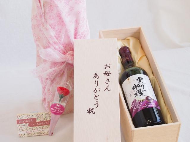母の日 お母さんありがとう木箱セット 実りの収穫赤ワインコンコード (山梨県) 720ml 母の日カードとカーネイション付