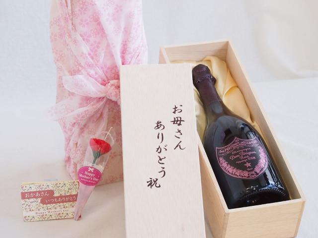 母の日 お母さんありがとう木箱セット ドンペリニヨンピンク ロゼ シャンパン (フランス) 750ml 母の日カードとカーネイション付