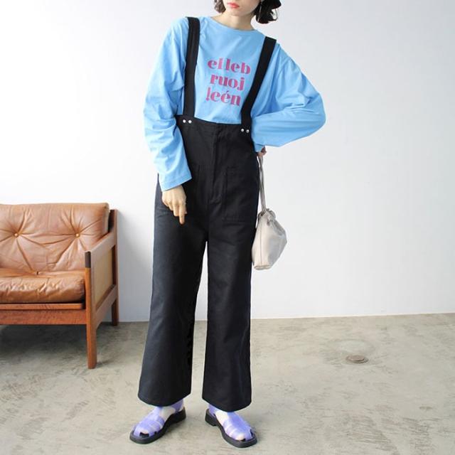カジュアルなデザインのサロペットなので、ボーダーやロゴTと好相性。
