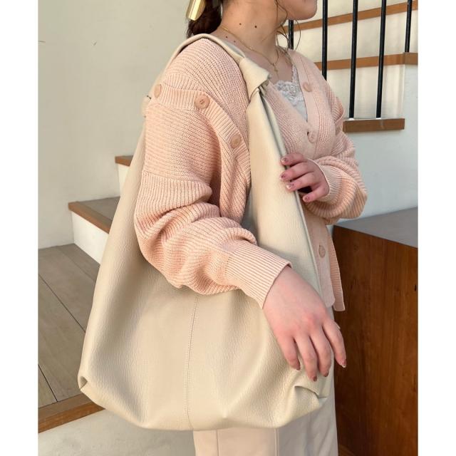 柔らかな合皮素材のワンハンドルで大き目デザインですが重さを感じにくいデザインになっています◎