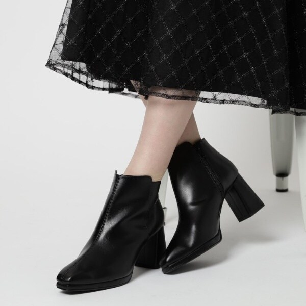 ブロックヒールショートブーツ