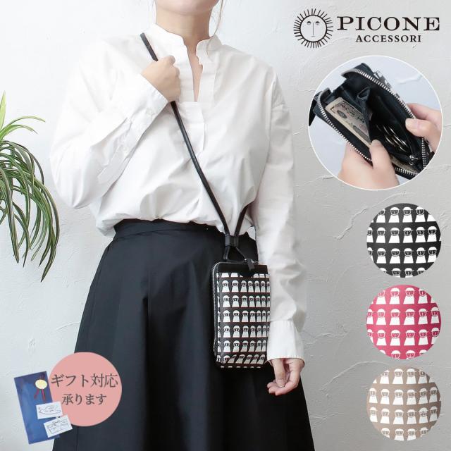 スマホポシェット ポシェット 縦 レディース お財布機能付き 財布 カード スマホ スマホポシェット ブランド 小さめ 斜めがけ 軽量 大人 おしゃれ かわいい 軽い おすすめ 旅行 PICONE ピッコーネ 薄型 ファスナー付き チャック付き ファスナー ピンク