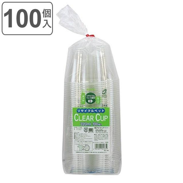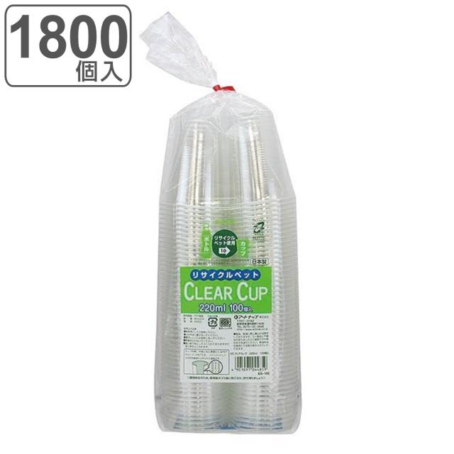 プラコップ 220ml 1800個入 100個入×18セット 日本製 クリアカップ リサイクルPET ( プラスチック 使い捨て 業務用 コップ クリアコップ カップ 透明 バーベキュー ジュース 使い捨てカップ 使い捨てコップ )