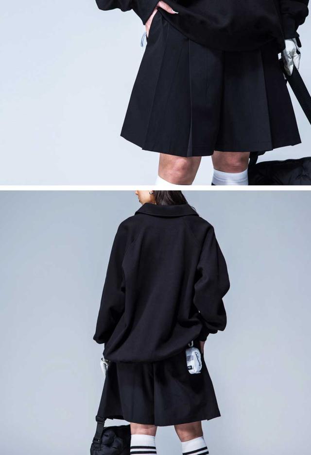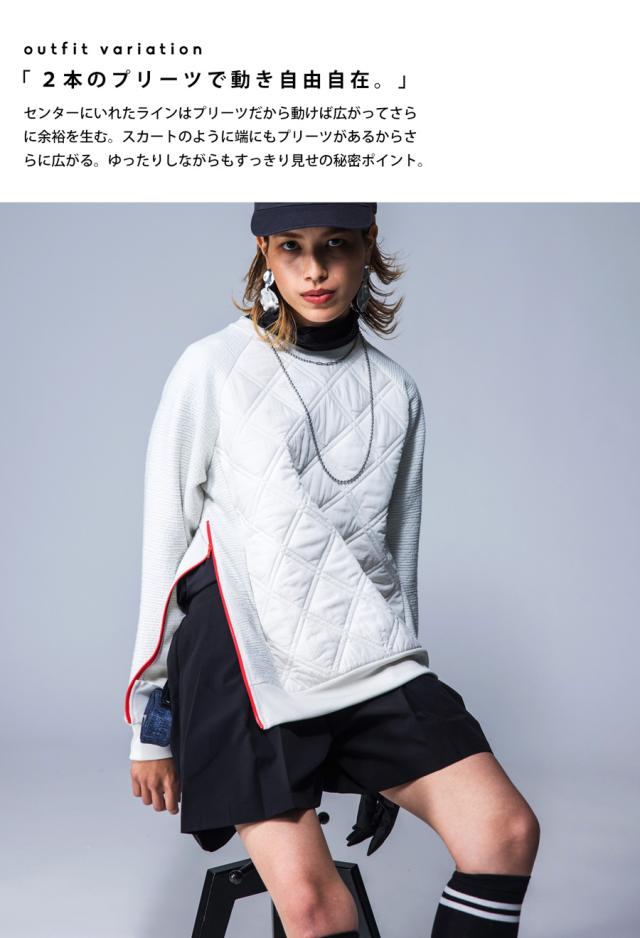 ・プリーツでスカートのようなシルエットがこなれ感を演出。