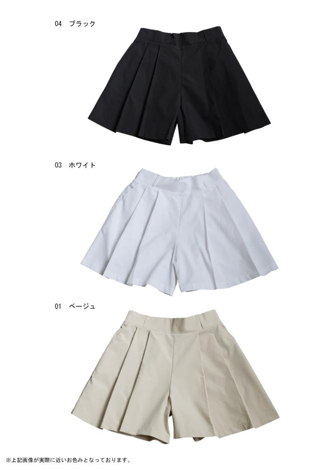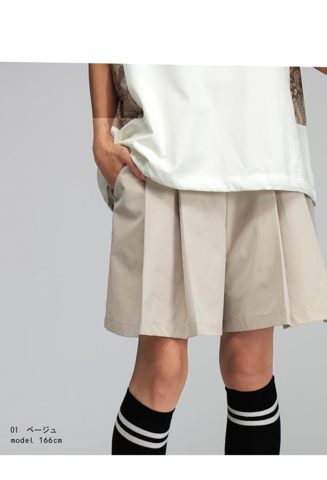 ast-00008 パンツ レディース ボトムス 無地 ショート丈 プリーツ キュロットスカート ショートパンツ 半ズボン ゆったり センタープレス ポケット付き ミニスカート Aライン 後ろゴム