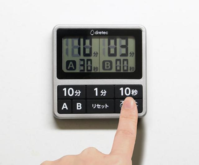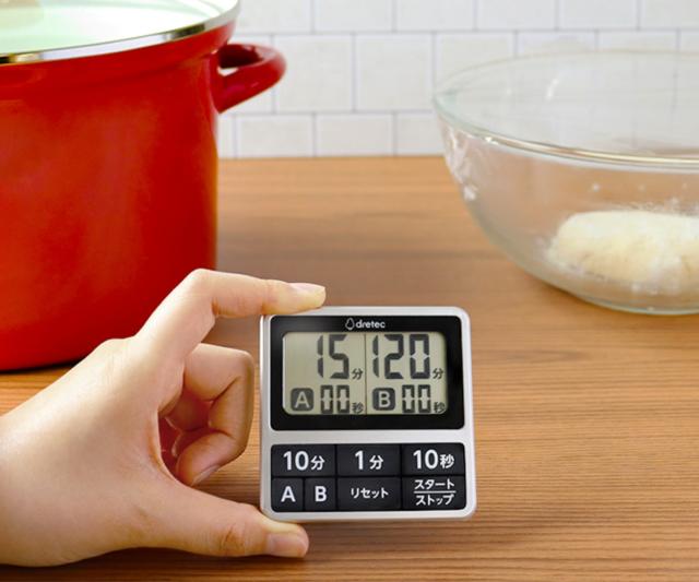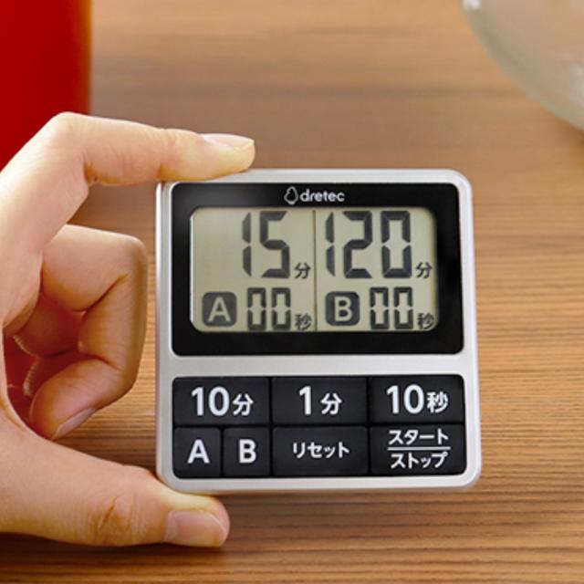 1つのタイマーで2つの時間が計れるので同時調理の時間管理ができます。セットした時間もそれぞれ表示されるので、経過時間の確認もできます。