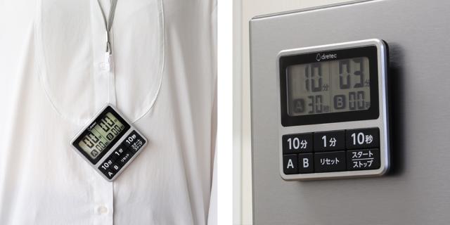 ダブルタイマー マグネット付き ストラップ付き ( デジタルタイマー 2連式タイマー マグネット キッチン スリム 紐掛け 防滴 料理 学習 勉強 簡単 シンプル 小さい カウントダウン カウントアップ リピート ネックストラップ付き )
