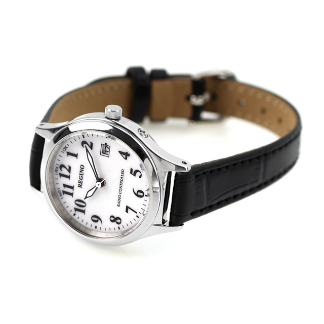 正規品 7年保証キャンペーン 送料無料 シチズン レグノ ソーラーテック 電波ソーラー レディース 腕時計 KS1-210-20 CITIZEN REGUNO SOLAR-TECH アナログ シルバー ブラック 黒 革ベルト ◆ビジネスからカジュアルまでシーンを選ばないデザイン性と機能性を兼ね備えたスタンダードウオッチ。定期的な電池交換や時刻修正が不要なソーラーテック電波時計です。5気圧防水、暗い場所でも時刻が確認しやすい夜光付き針など、価格と機能性のバランスを追求したコストパフォーマンスが高いモデルです。シンプルで見やすい文字板デザイン。ベーシックなアラビア数字インデックスを採用しています。カーフ革の型押しバンドが高級感を演出します。カジュアルスタイルにはもちろん、ジャケットやコートにも合わせやすくシーンを問わずお使いいただけます。プレゼントにもおすすめです。 発売日:23年01月発売