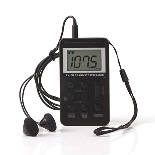 ポケットラジオ Acouto デュアルバンド AM / FM ミニラジオ 高感度 3検索モード デジタルLCDディスプレイ 音量調整 オーディオラジオ 卓上ラジオ イヤホン付き
