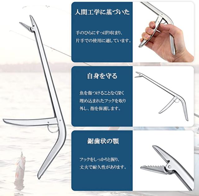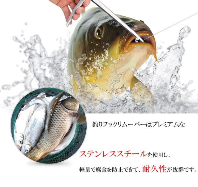 【プレミアム素材】釣りフックリムーバーはプレミアムなステンレススチールを使用し、軽量で腐食を防止できて、耐久性が抜群です。【素晴らしフィッシングツール】針はずしはフックを取り外すために特別に設計されて、使いやすく、釣り人のための素晴らしフィッシングツールです。