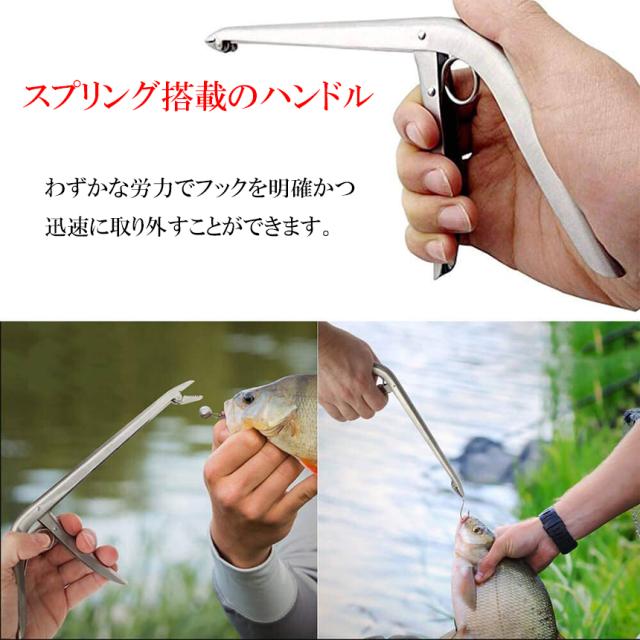 釣りフックリムーバー フィッシング 針外し 針はずし 魚獲り ステンレス製 スプリング式 フックを取り外す 防錆 使用やすい ペンチ 釣りアクセサリー 釣り用品 漁具 淡水 海水適用 全魚種対応