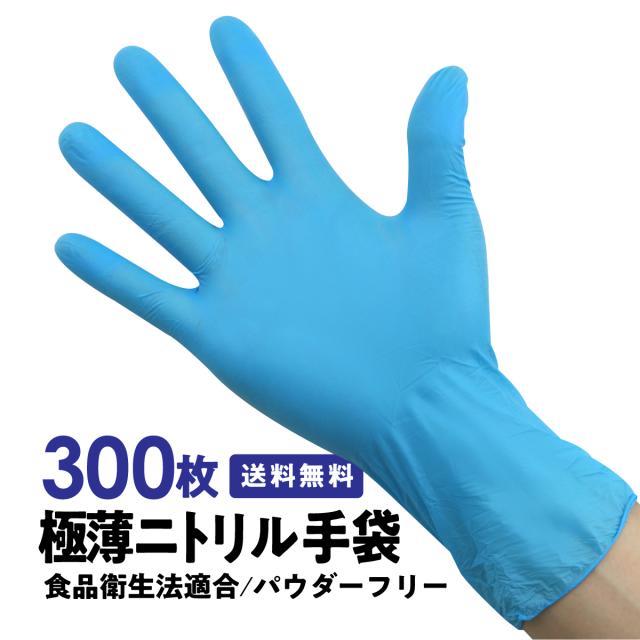 極薄 ニトリル手袋 混合 青 300枚 パウダーフリー ニトリルグローブ ニトリルゴム手袋 S M L サイズ 食品衛生法 使い捨て ブルー おすすめ アレルギー 粉なし 厚手 耐油性 耐汚性 破れにくい 左右兼用 食品加工 掃除 美容 理容 家庭菜園 作業用 使いやすい 3箱 送料無料