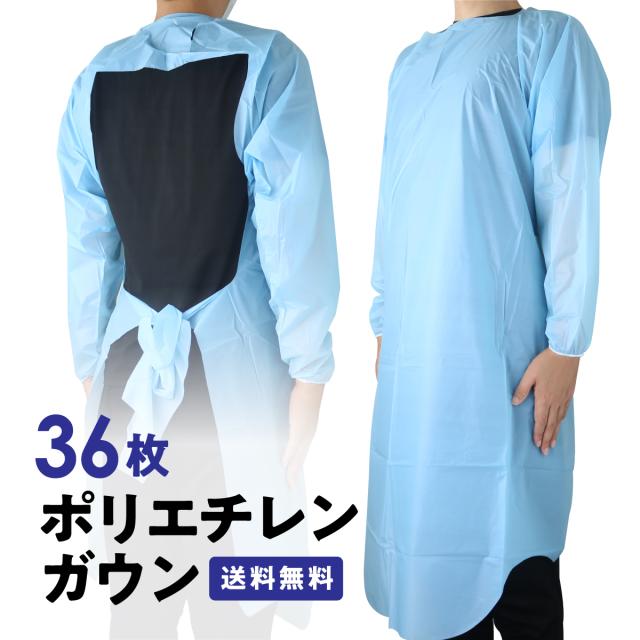 ガウン 使い捨て ポリエチレン PE ブルー フリーサイズ 36枚入り 使い捨てエプロン PEエプロン 袖付き 防護服 防水 防油 防汚 介護用 抗菌化加工 長袖 男女兼用 感染症対策 抗菌 予防衣 使い捨てガウン 防水ガウン ヘアカラー 高耐久 軽量 袖ゴム PEガウン 送料無料