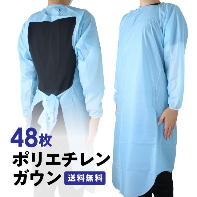 ガウン 使い捨て ポリエチレン PE ブルー フリーサイズ 48枚入り 使い捨てエプロン PEエプロン 袖付き 防護服 防水 防油 防汚 介護用 抗菌化加工 長袖 男女兼用 感染症対策 抗菌 予防衣 使い捨てガウン 防水ガウン ヘアカラー 高耐久 軽量 袖ゴム PEガウン 送料無料