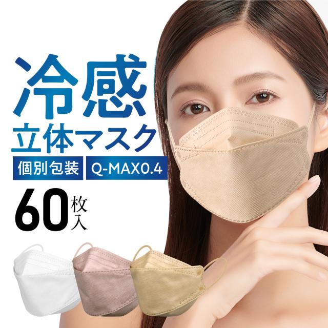 冷感マスク 不織布 立体 血色マスク 60枚 個包装 カラー 大きめ 3D メンズ レディース 持ち運び おしゃれ 4層構造 耳が痛くならない 99%カットフィルター 男女兼用 カラーマスクくちばし マスク ホワイト ピンク ベージュ 血色カラー 感染予防 衛生用品 2箱 送料無料