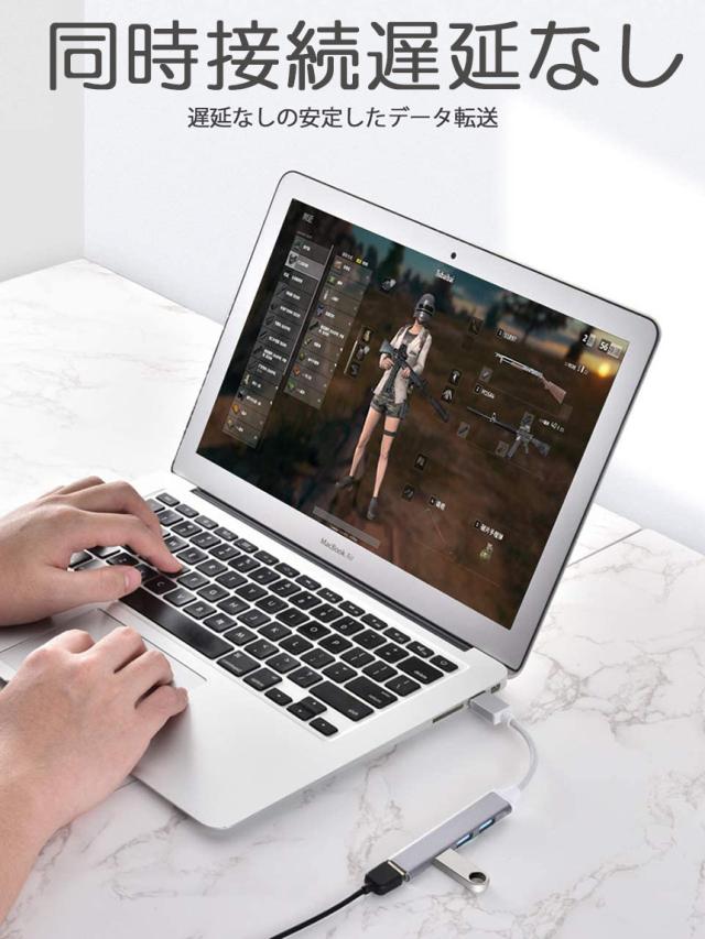 パソコンのUSBポート1つで、簡単に4つに拡張できるので、USBポートの不足を解消します。キーボード、マウス、プリンター、USB扇風機など幅広いデバイスと接続可能。