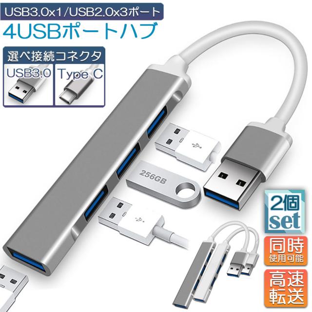 USBハブ 2個セット type-c USB3.0 2端子 選べる 4ポート 超薄型 USB3.0 バスパワー ps4 USB ハブ ウルトラスリム 軽量 コンパクト USB Hub USB C Type cハブ Windows Macなど対応 USB拡張